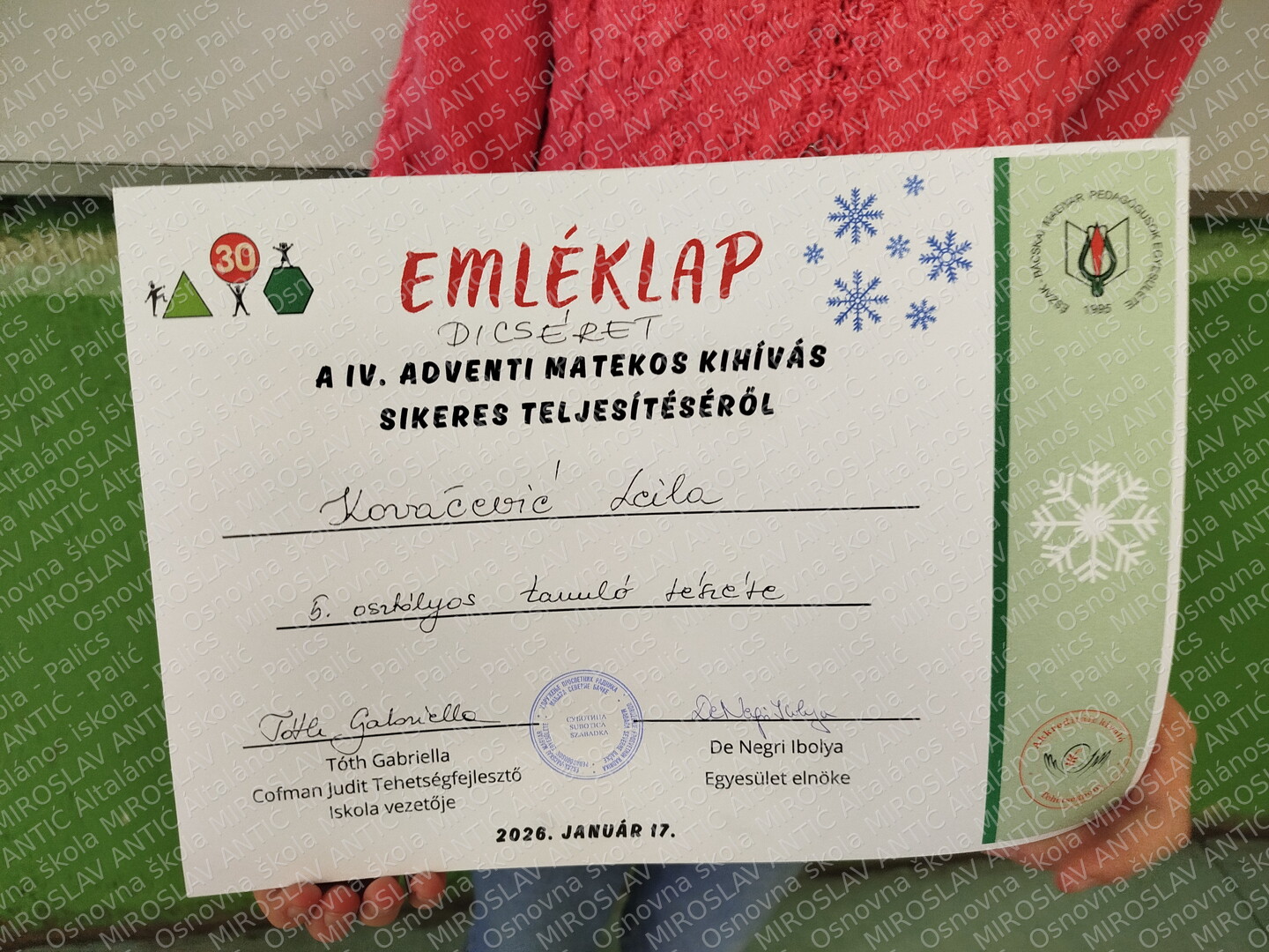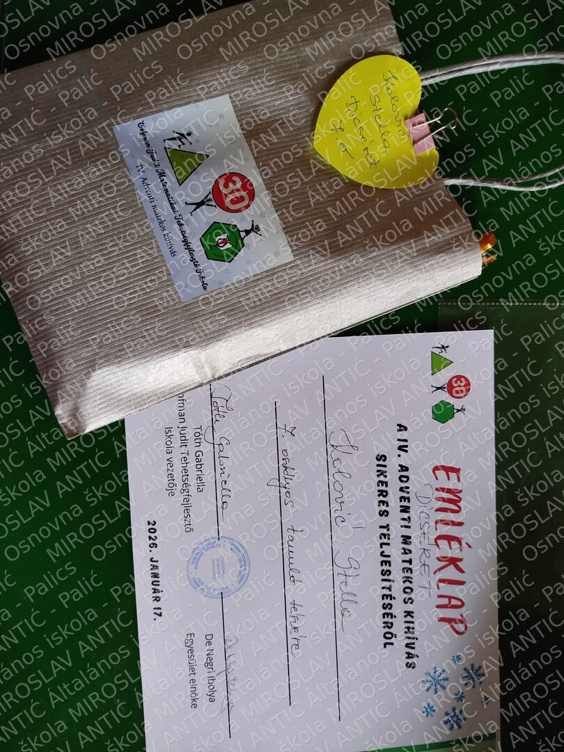 учествовали су у адвентском математичком изазову у организацији Школе за даровите ученике из Суботице.Током 24 дана, кроз свакодневне математичке задатке, показали су истрајност, марљивост и изузетне способности логичког размишљања. Њихов труд награђен је похвалницом.